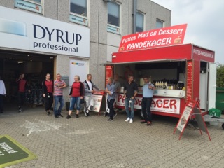 Vi ankommer, som udgangspunkt med vores røde pandekagevogne.
