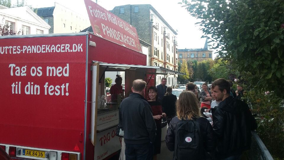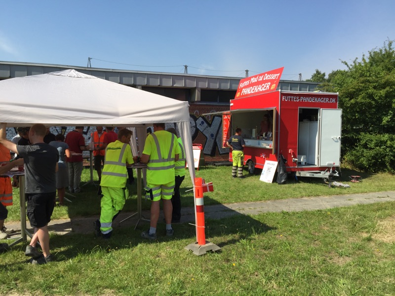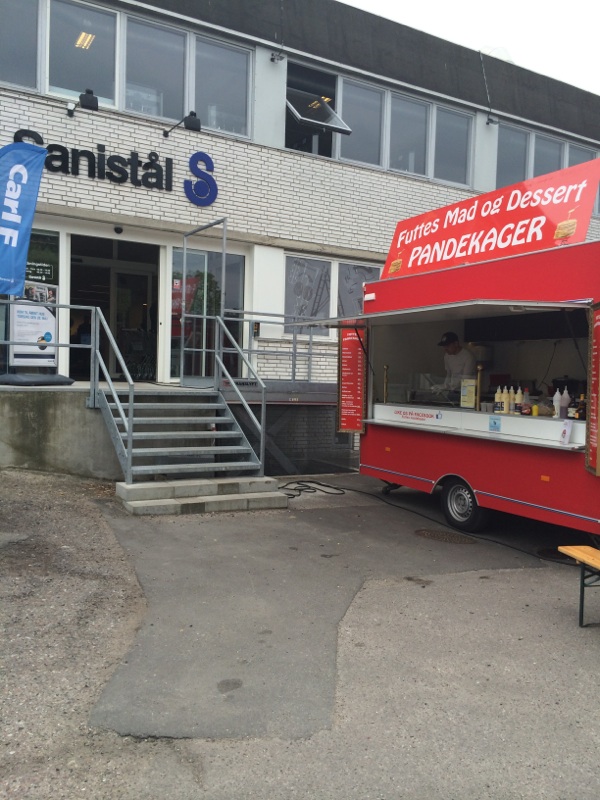Vi ankommer, som udgangspunkt med vores røde pandekagevogne.